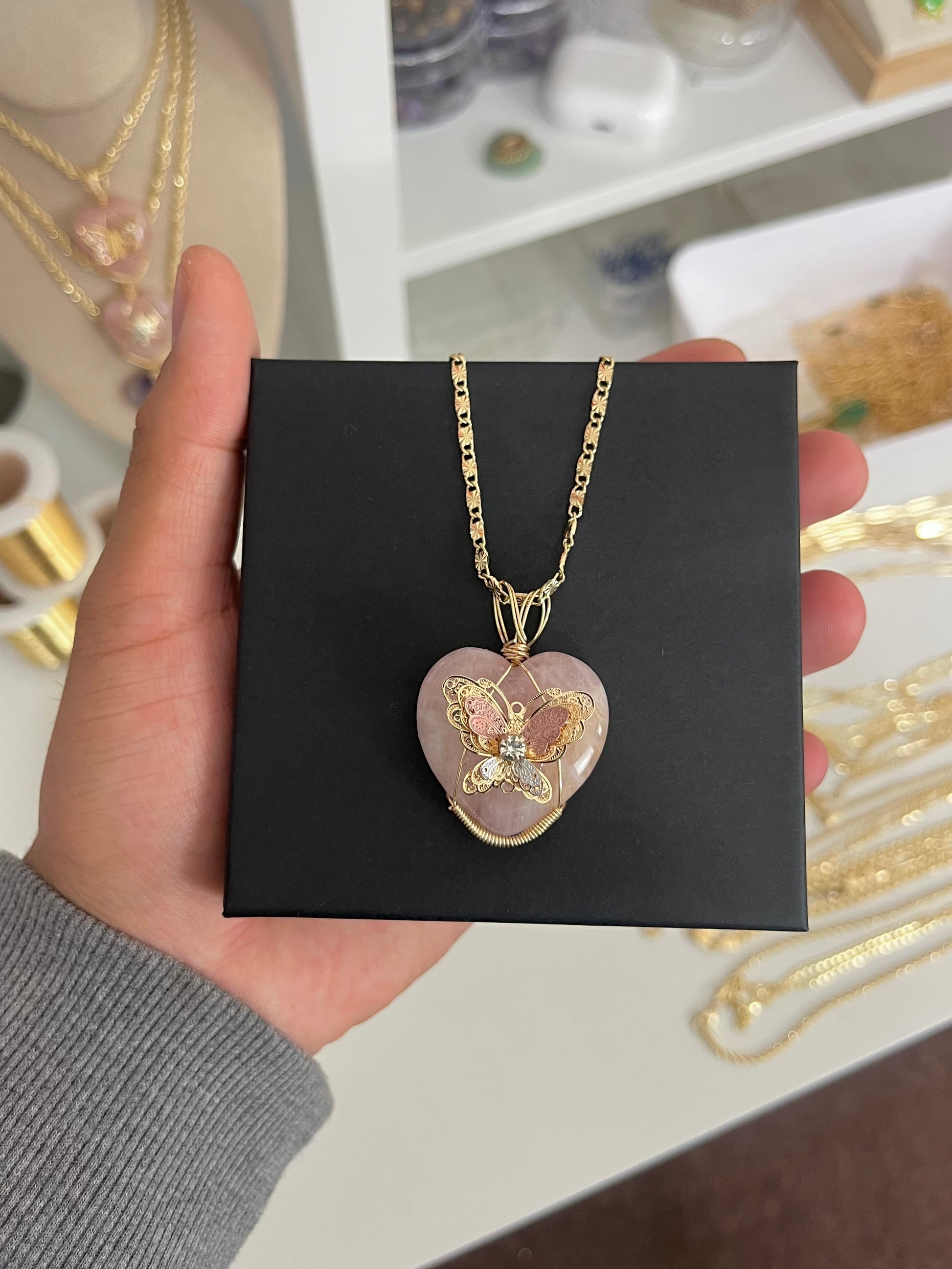 Obsessed with this rose quartz necklace! the gold compliments the heart so well and everything ties together nicely. the chain is high quality and this will definitely last a long time!!